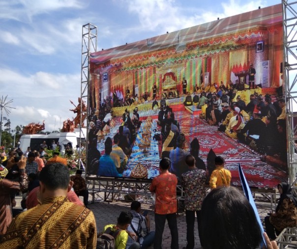 Warga Saksikan Penabalan Gelar Kehormatan Adat Melayu Riau untuk Presiden Jokowi via Layar Raksasa