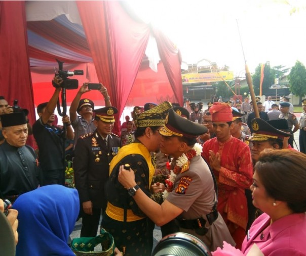 Kapolda Riau Brigjen Widodo Eko Disambut Tradisi Pedang Pora dan Adat Melayu di Mako Brimob
