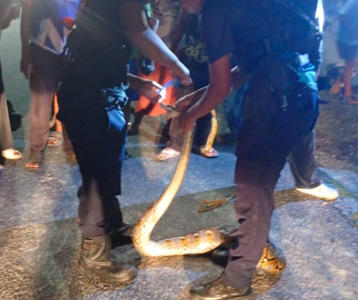 DPKP Pekanbaru Amankan Ular Piton 5 Meter di Pos Ronda