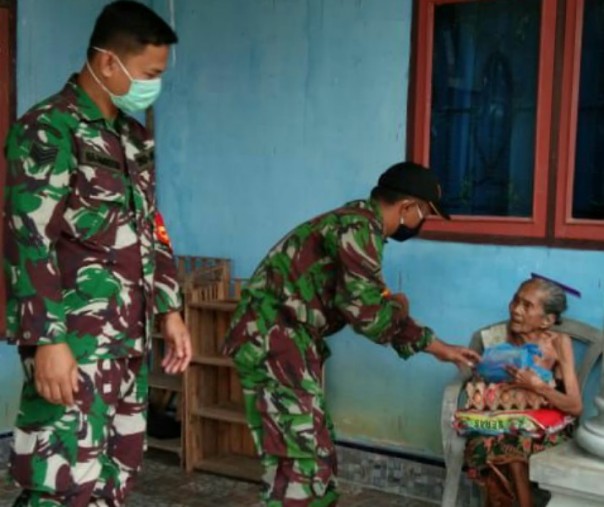 Babinsa Koramil 04 Pangkalan Kuras Salurkan Bahan Pokok ke Kaum Duafa di Kelurahan Sorek Satu Pelalawan Saat Pandemi Corona