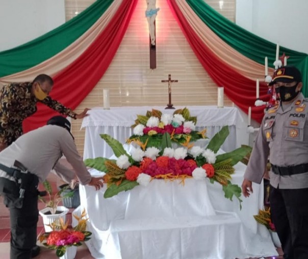 Polsek Kerumutan Kerahkan Personel Amankan Gereja Katolik Santo Thomas Pelalawan Saat Natal