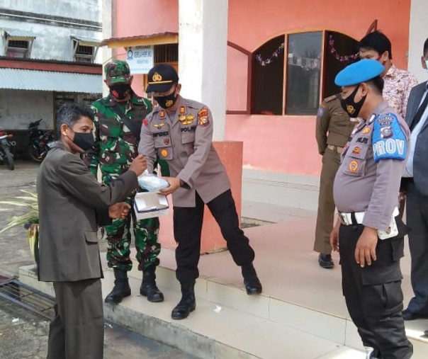 Polsek Pangkalan Kerinci Pelalawan Sterilisasi dan Cek Protokol Kesehatan di Gereja