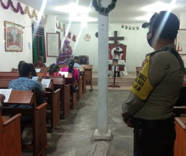 Polsek Kerumutan Pelalawan Jaga Gereja Saat Ibadah Perayaan Tahun Baru
