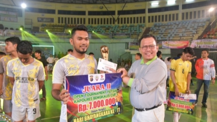 HUT Bhayangkara ke 77, Ketua DPRD Bengkalis Hadiri Penutupan Turnament Fustal