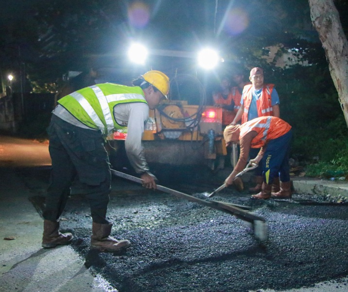 Pemko Pekanbaru Genjot Perbaikan Jalan di Bukit Raya dan Tenayan Raya hingga Dini Hari