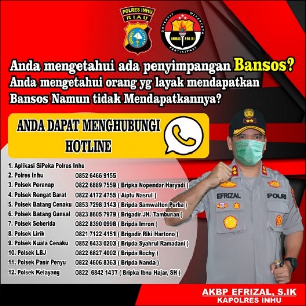 Polres Inhu Buka Hotline Pengaduan Penyimpangan Bansos