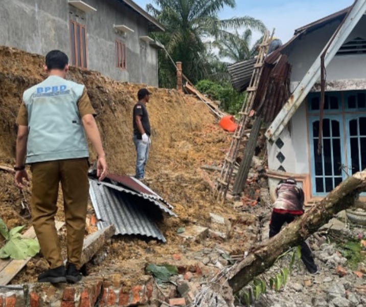 BPBD Pekanbaru Tinjau Lokasi Longsor di Tenayan Raya, Rumah Warga Alami Kerusakan