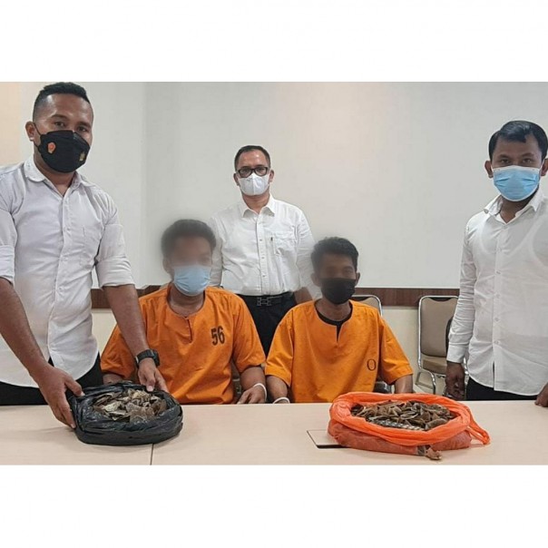 Ditreskrimsus Polda Riau Ciduk 2 Pria saat Transaksi Sisik Trenggiling di Pekanbaru
